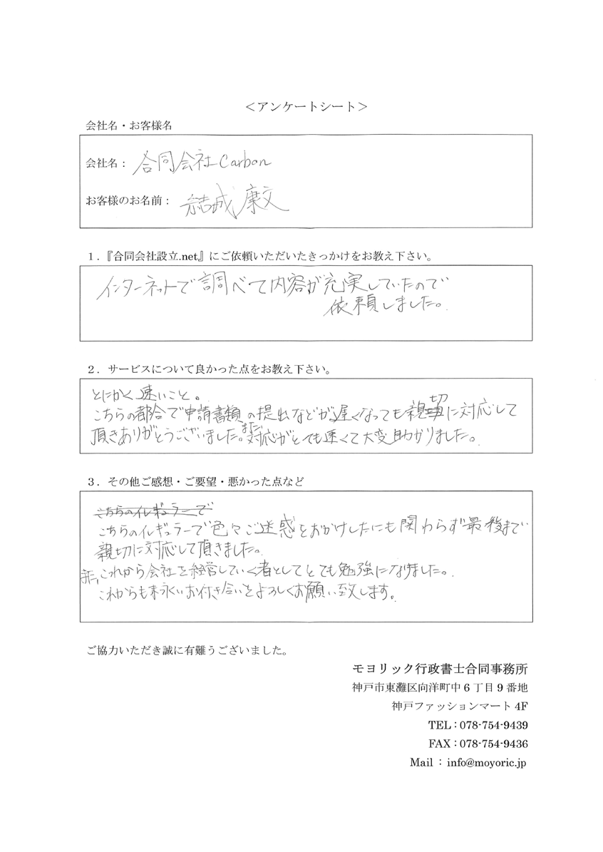 合同会社Carbon 様 代表社員:結城 康文 様